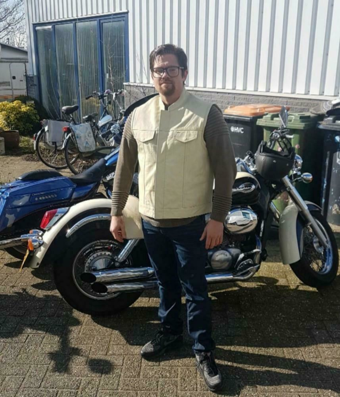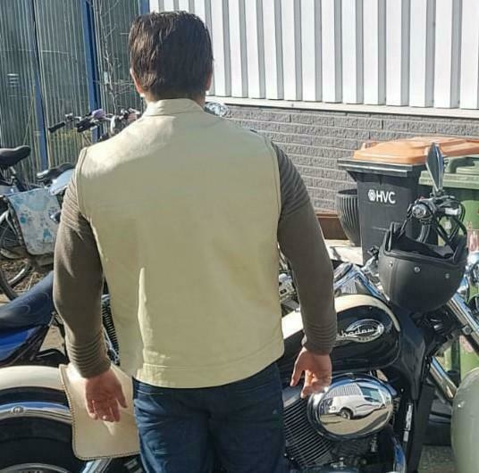 This MC-vest has a high Mandarin neck, like the classic Cut Offs in the Biker Scene.