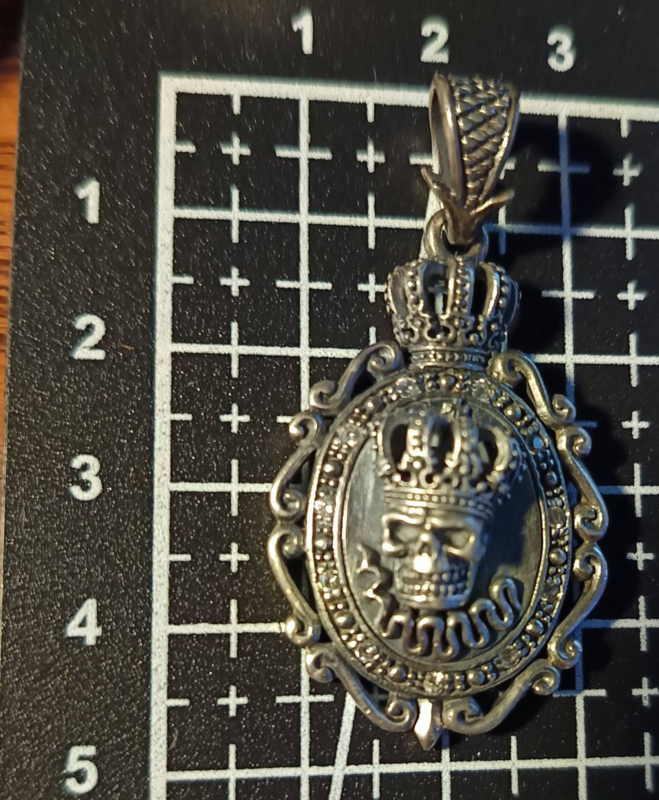 The Crown Skull Pendant symbolizes rebirth, status, power, and is a symbol of faith, a blessing of peace, in addition to the fact that wearing this type of jewelry is a symbol of victory over evil and death.