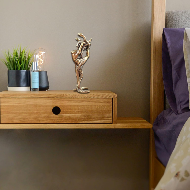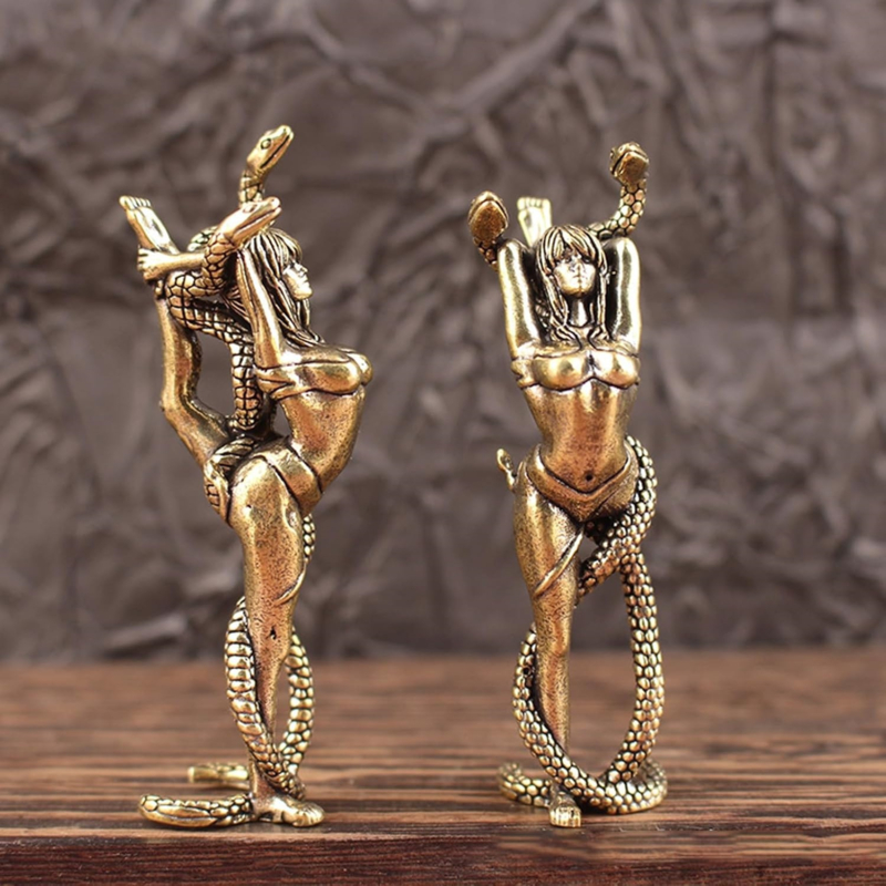Artikelnummer: XXX-02 - SNAKE GIRLAdd a touch of mystique and elegance to your space with this Brass Snake Beauty Ornament, a stunning sculpture featuring a poised female figure in a yoga-inspired pose, gracefully entwined with a coiled snake.