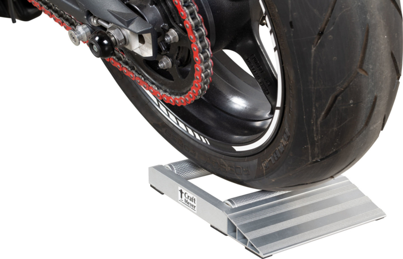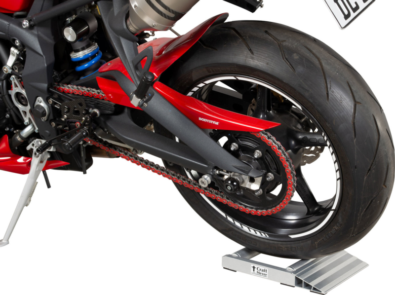 For speedy chain and wheel cleaning and maintenance, we recommend the Craft-Meyer "Aluminium" Rear Wheel Roller. Specially designed with a very low profile to enable its use without increasing the height of the sidestand. The rear wheel roller is also made of aluminium and weighs much less than a steel version which makes positioning much easier.